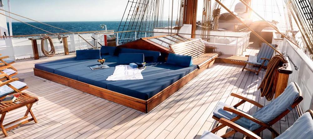 Experimente la aventura de navegar a bordo del Sea Cloud II , un elegante barco de tres mástiles. Este magnífico velero ofrece una atmósfera única, combinando a la perfección el romanticismo de la vida en el mar con una amplia gama de comodidades y lujos modernos. Los espaciosos camarotes ofrecen camarotes amplios y bien equipados con todas las comodidades del hogar, como televisión, minibar y control de temperatura. Hay una variedad de estilos de camarote, cada uno con sus propias comodidades.