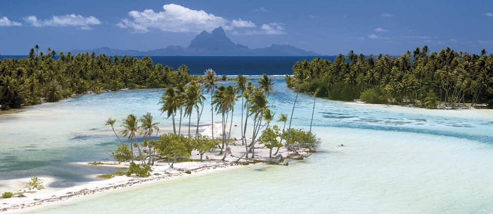 - Contemple paisajes icónicos e imponentes como el verde monte Otemanu de Bora Bora, que sobresale sobre las aguas turquesas, y los escarpados acantilados de Makatea que caen directamente a playas desiertas.