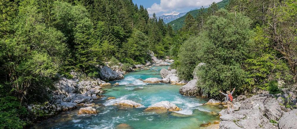 Sigue la cinta esmeralda del río Soča mientras recorres el Parque Nacional de Triglav. Adéntrate en la amplia cuenca del valle de Trenta, donde las ovejas pastan en prados y las casas de campo tradicionales se agrupan bajo imponentes picos. Cruza un puente colgante sobre el desfiladero de Kršovec y continúa hacia Lepena. Disfruta de una cena libre esta noche, explorando la tranquila aldea de Bovec, famosa por su queso local. (10 km de senderismo, 4-5 horas, 120 m de ascenso y 160 m de descenso).
